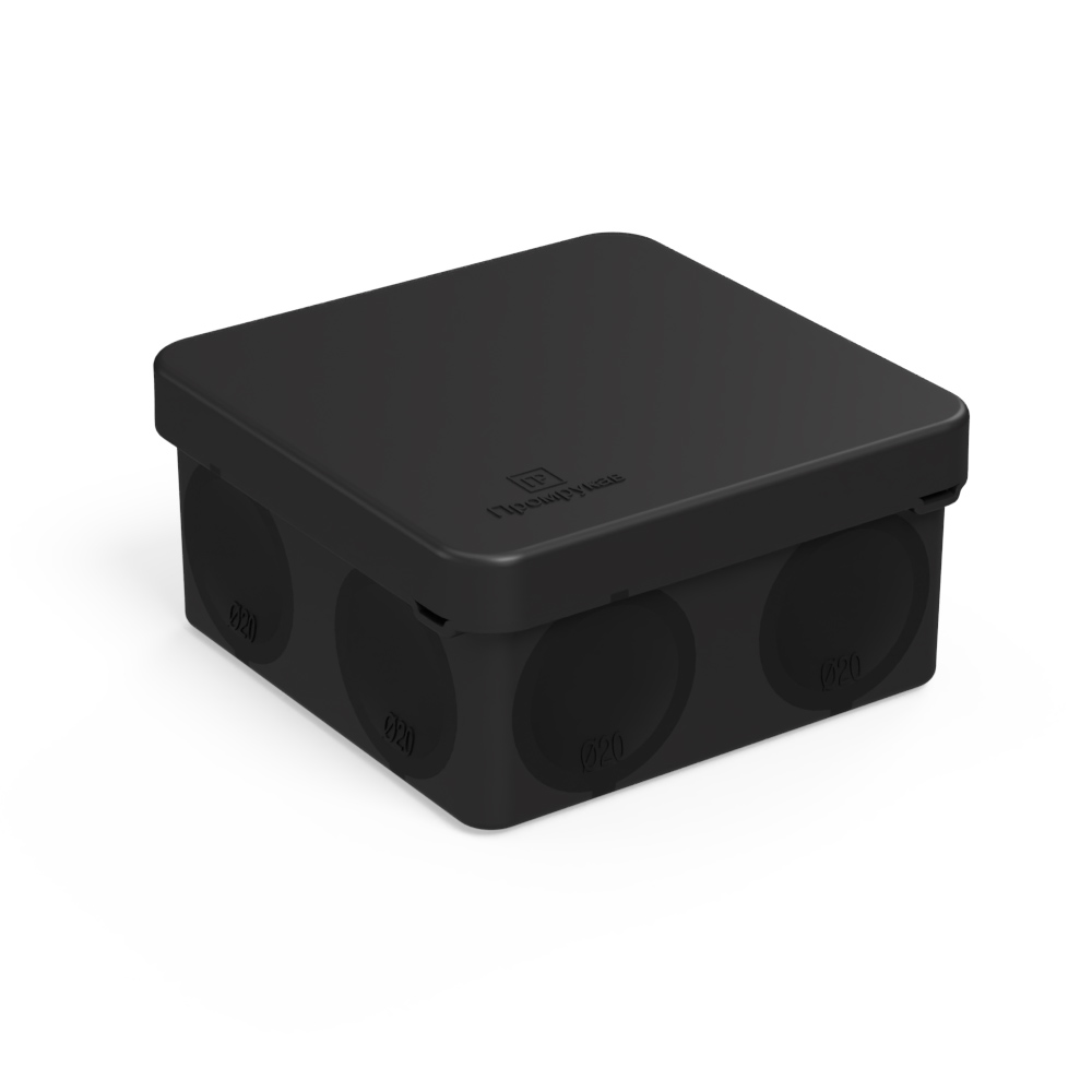 Коробка распределительная 60-0210-9005м для прямого монтажа двухкомпонентная безгалогенная (HF) черная 80х80х40 (8шт/уп) Промрукав