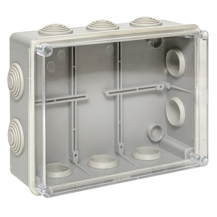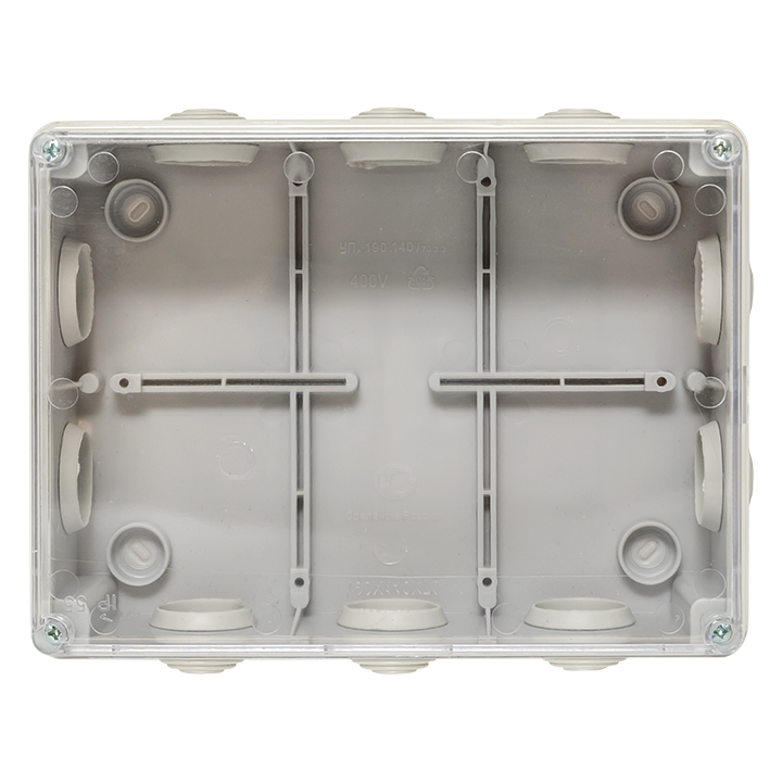 Коробка распределительная КМР-050-042пк пылевлагозащищенная, 10 мембранных вводов, уплотнительный шнур, прозрачная крышка (190х140х70) PROxima EKF