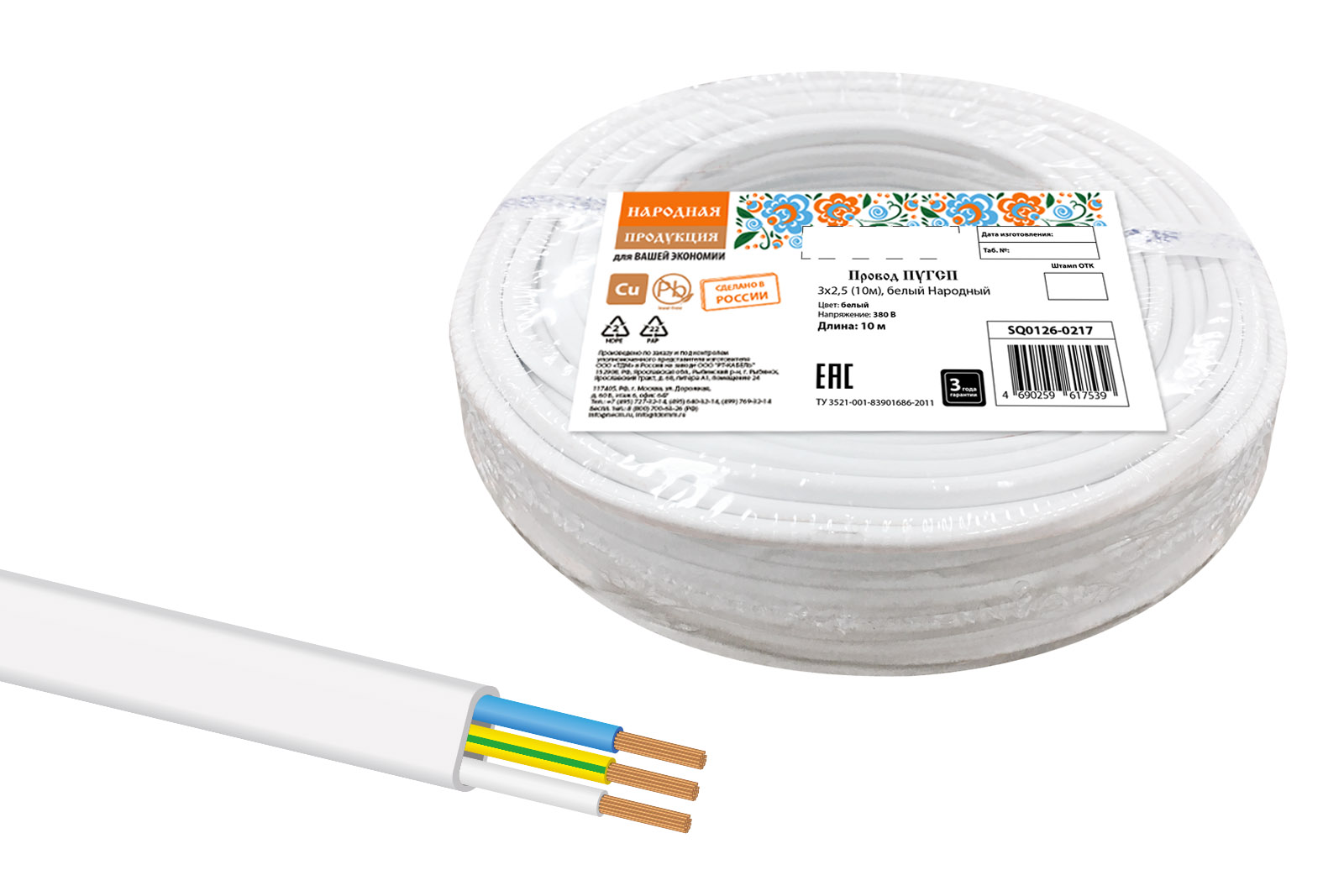 Провод ПУГСП 3х2,5 (10м), белый Народный доступен в интернет‑магазине ВольтМаркет. Покупая у нас, вы получаете дополнительные преимущества: