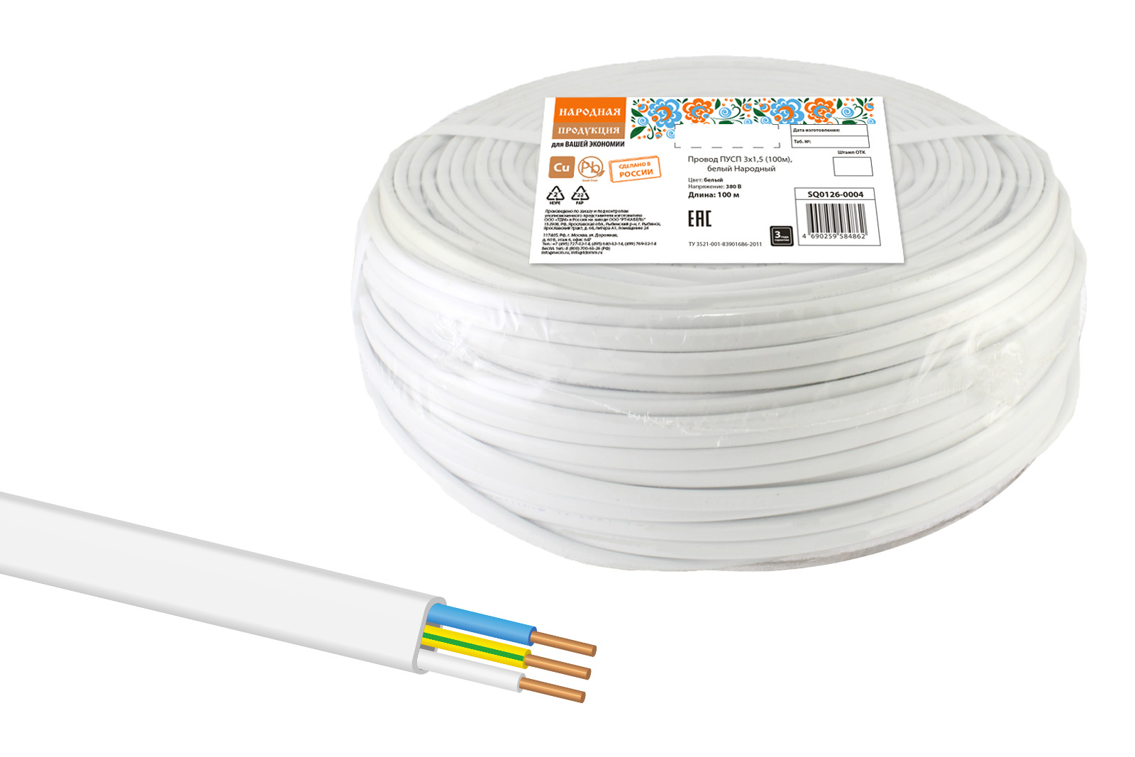 Провод ПУСП 3х1,5 (100м), белый Народный доступен в интернет‑магазине ВольтМаркет. Покупая у нас, вы получаете дополнительные преимущества: