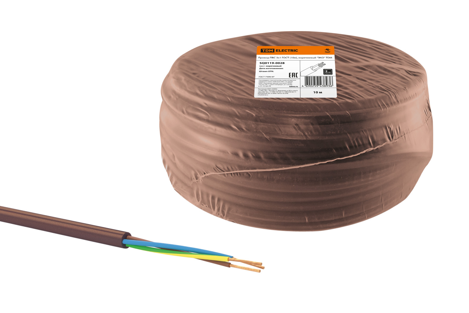 Провод ПВС 3х1 ГОСТ (10м), коричневый "ЭКО" TDM