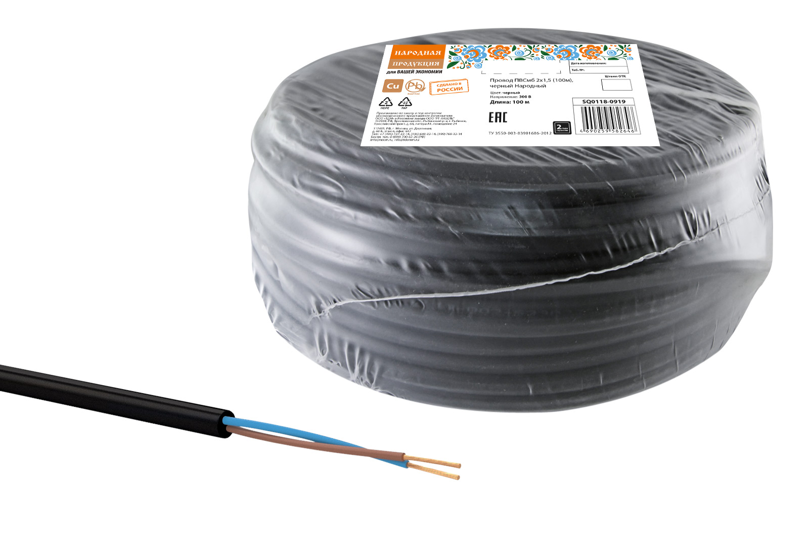 Провод ПВСмб 2х1,5 (100м), черный Народный доступен в интернет‑магазине ВольтМаркет. Покупая у нас, вы получаете дополнительные преимущества: