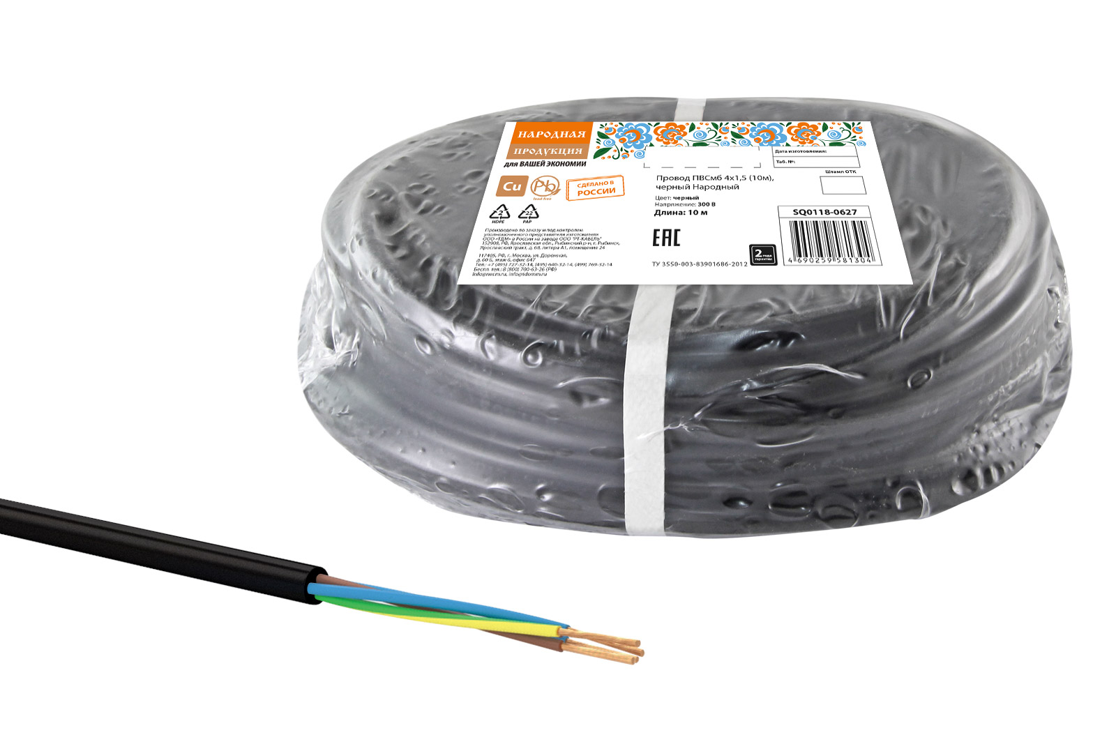 Провод ПВСмб 4х1,5 (10м), черный Народный
