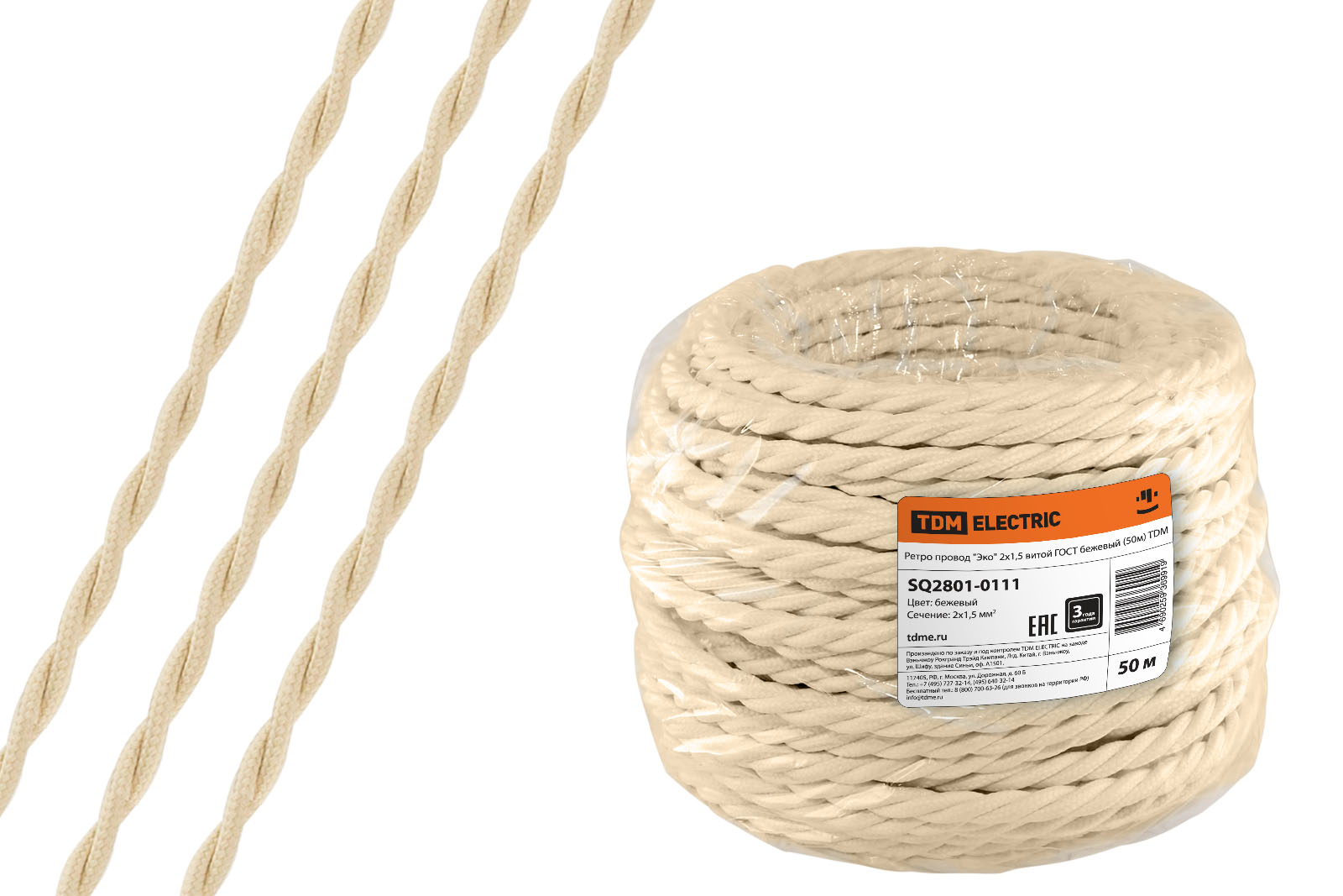 Ретро провод "Эко" 2х1,5 витой ГОСТ бежевый (50м) TDM доступен в интернет‑магазине ВольтМаркет в Оренбурге. Покупая у нас, вы получаете дополнительные преимущества: