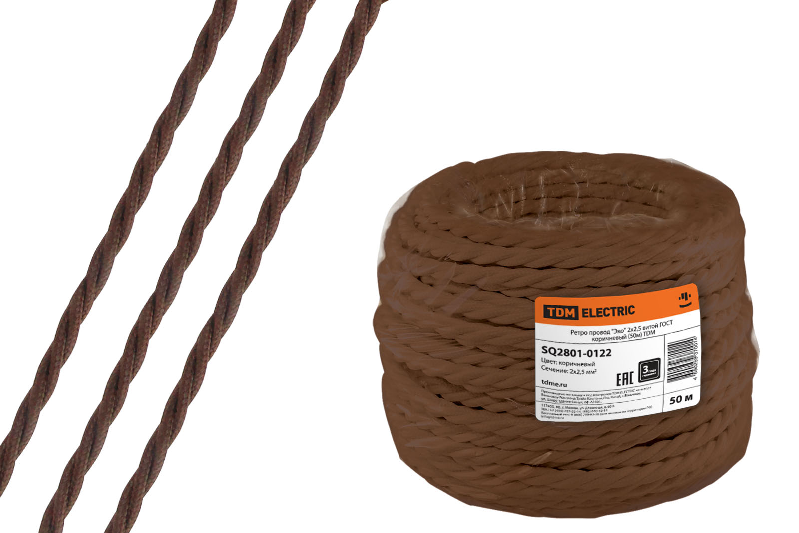 Ретро провод "Эко" 2х2,5 витой ГОСТ коричневый (50м) TDM доступен в интернет‑магазине ВольтМаркет. Покупая у нас, вы получаете дополнительные преимущества: