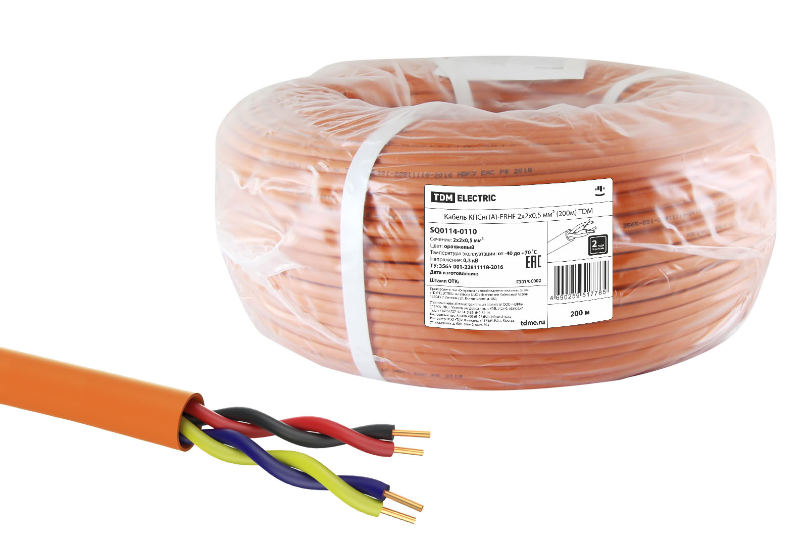 Кабель КПСнг(А)-FRHF 2х2х0,5 мм² (200м) TDM