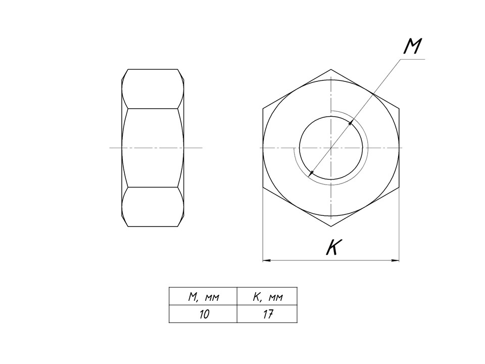 Гайка шестигранная М10 DIN 934 EKF