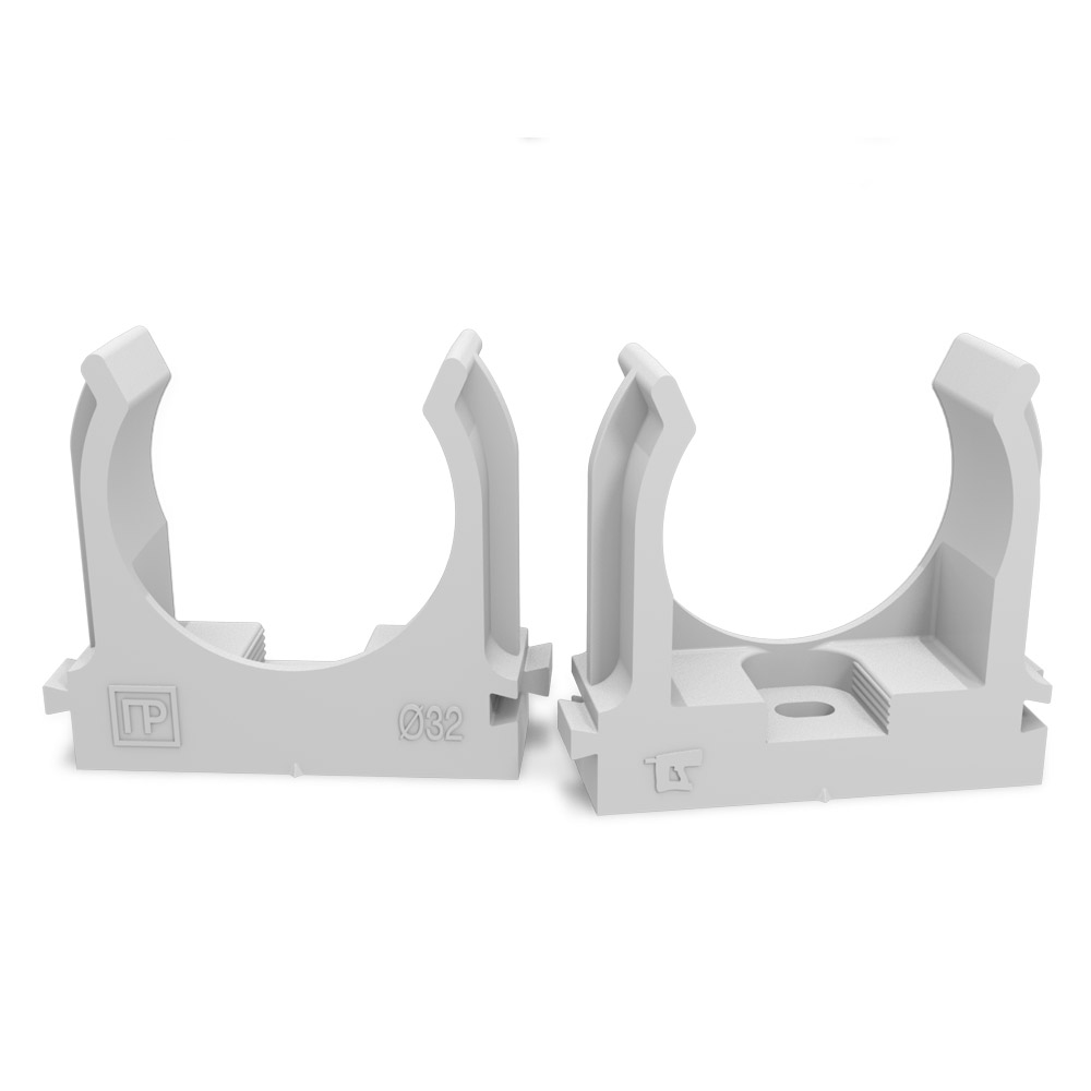 Крепеж-клипса для труб для прямого монтажа серая в п/э d32 мм (25шт/500шт уп/кор) Промрукав