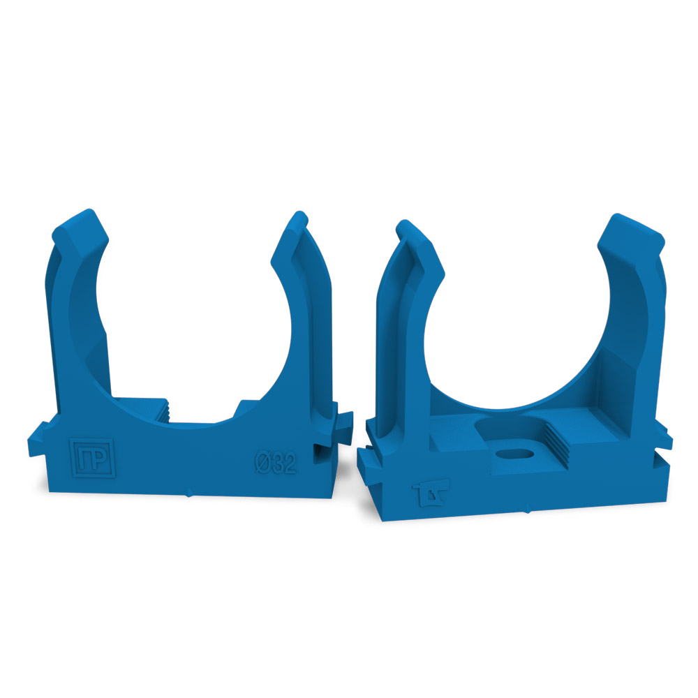 Крепеж-клипса для труб для прямого монтажа синяя d32 мм (25шт/500шт уп/кор) Промрукав