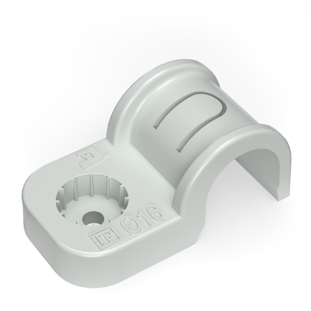Крепеж-скоба пластиковая односторонняя для прямого монтажа атмосферостойкая серая в п/э d16 мм (10шт/700шт уп/кор) Промрукав
