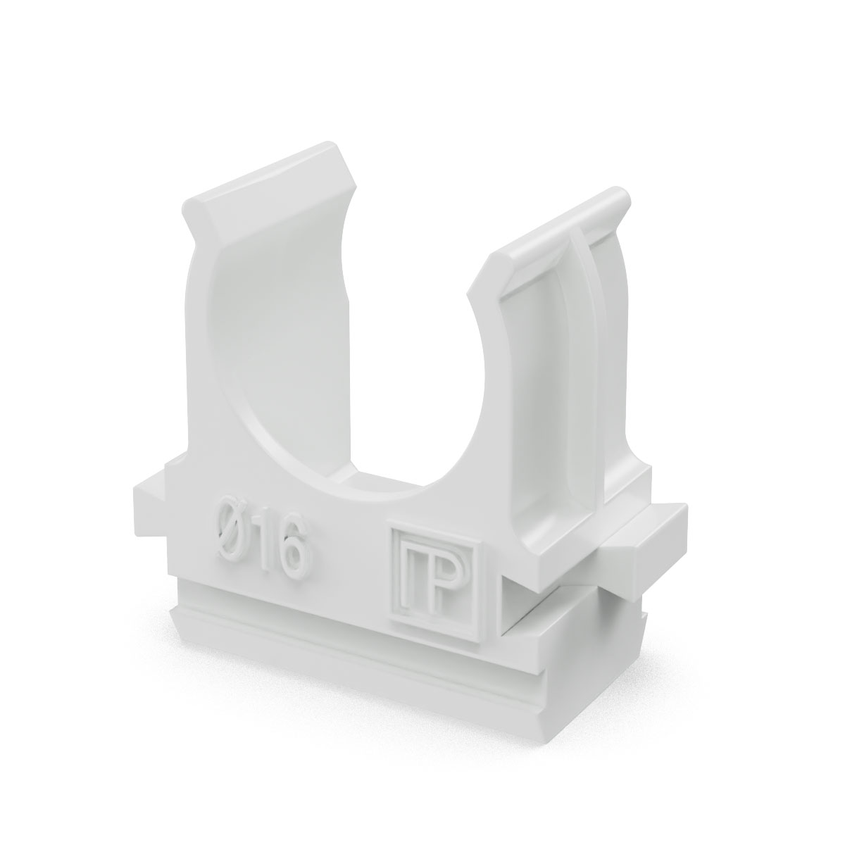 Крепёж-клипса для труб Полистирол белая d16 мм (100шт/2000шт уп/кор) Промрукав