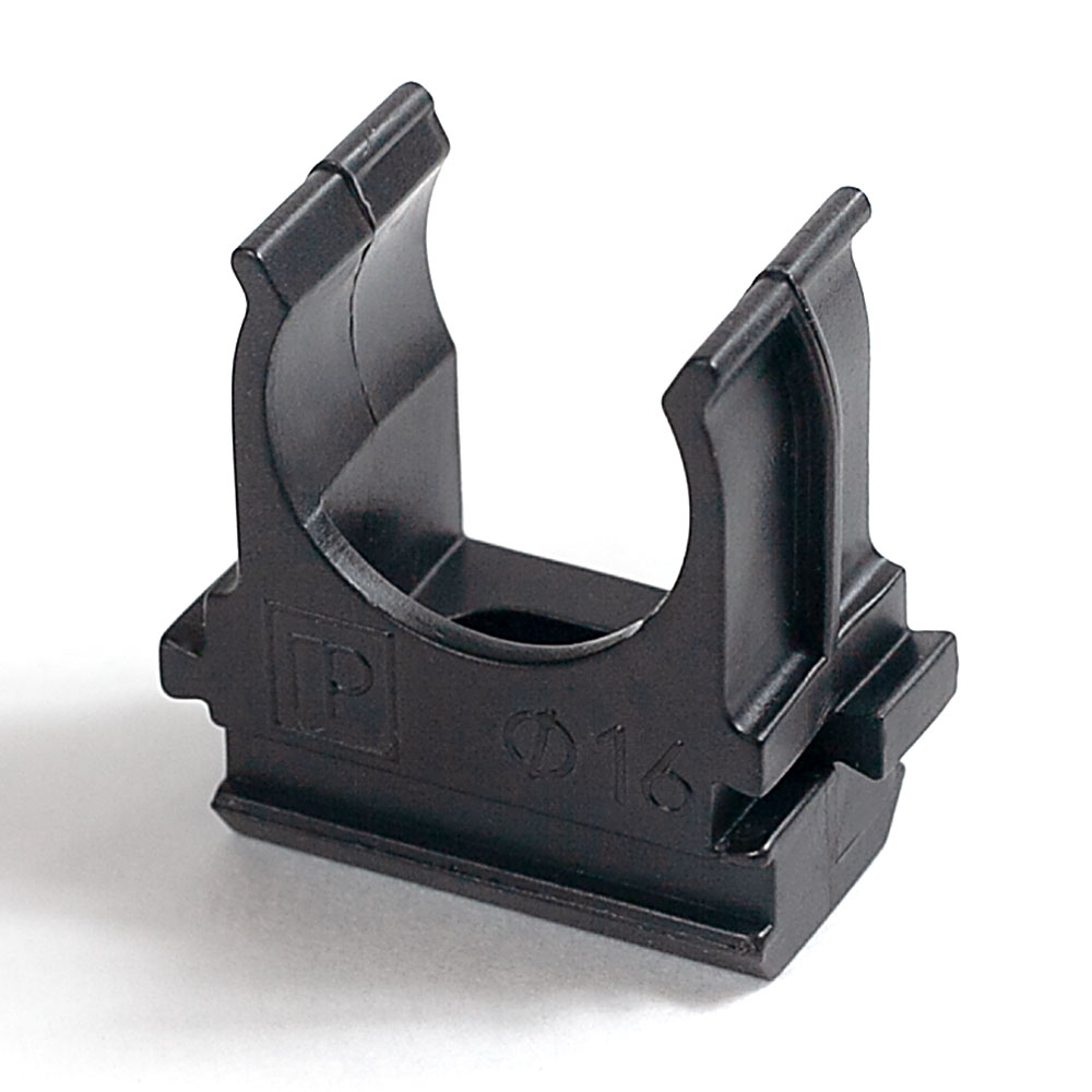 Крепёж-клипса для труб Полистирол черная d16 мм в малой упаковке (10шт/1000шт уп/кор) Промрукав