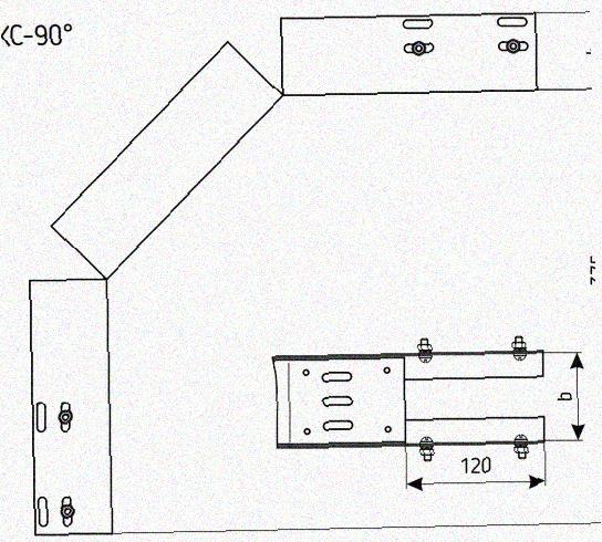 Лоток перфорированный КС 100х65-90 У3 для поворота трассы вниз на 90, окрашенный, S1,0