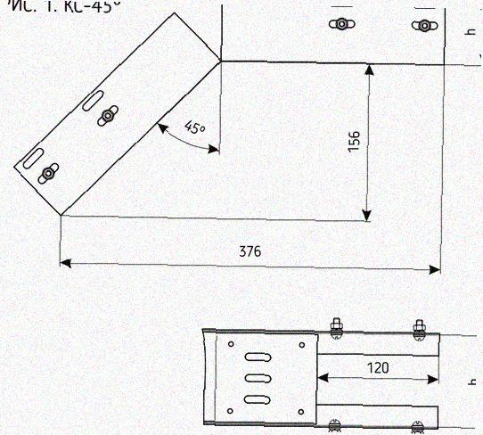 Лоток перфорированный КС 200х50-45 УТ1,5 для поворота трассы вниз на 45, оцинкованный лист S1,5