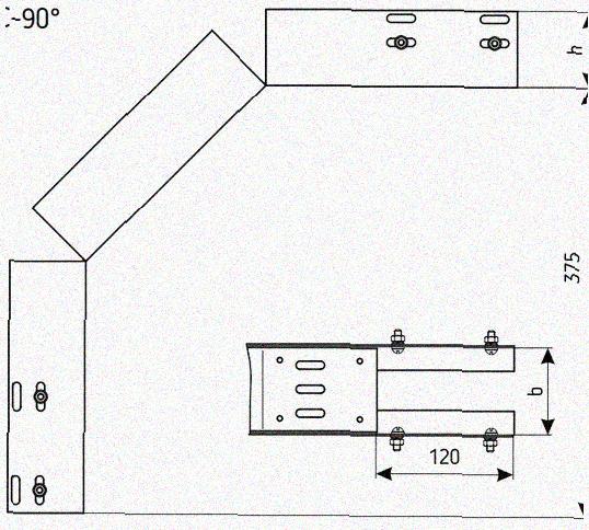 Лоток перфорированный КС 600х65-90 У3 для поворота трассы вниз на 90, окрашенный, S1,5