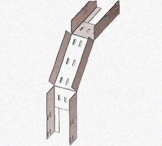 Лоток перфорированный КС 600х65-90 УТ1,5 для поворота трассы вниз на 90, оцинкованный лист S1,5