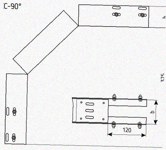 Лоток перфорированный КС 600х80-90 У3 для поворота трассы вниз на 90, окрашенный, S1,5