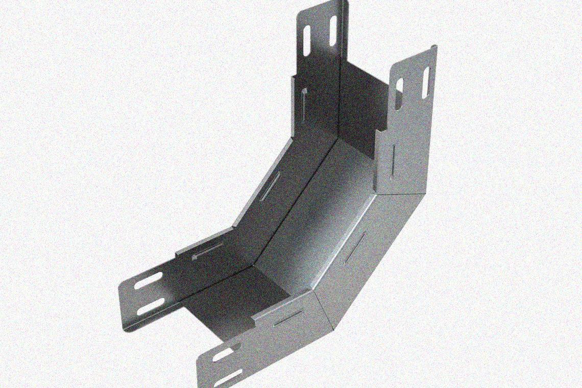 Лоток замковый глухой КПЗГ 150х65-45 УТ1,5 для поворота трассы вверх на 45, оцинкованный лист, S1,0