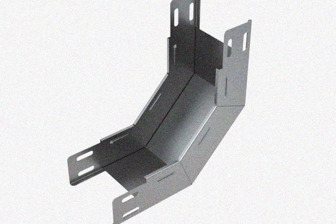 Лоток замковый глухой КПЗГ 200х65-90 УТ1,5 для поворота трассы вверх на 90, оцинкованный лист, S0,7