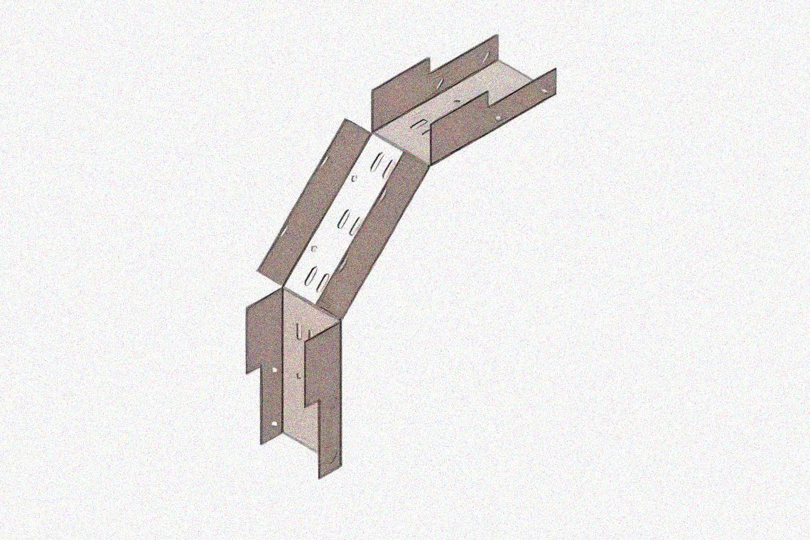 Лоток замковый глухой КСЗГ 500х110-90 УХЛ1 для поворота трассы вниз на 90, горячее цинкование S1,5