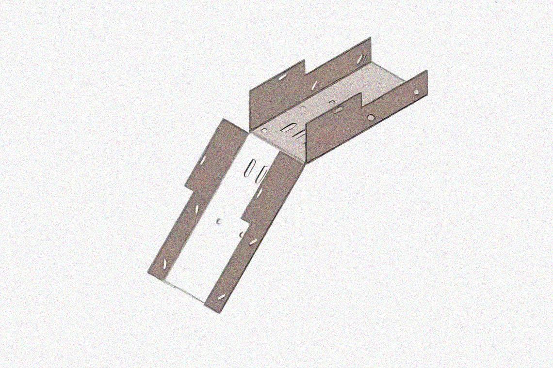 Лоток замковый глухой КСЗГ 50х50-45 УТ1,5 для поворота трассы вниз на 45, оцинкованный лист, S1,5