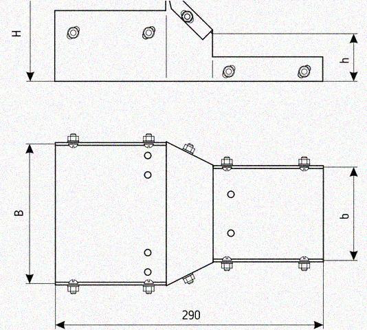 Лоток переходной замковый ЛПЗ 100х100-50х50 УХЛ1, горячее цинкование, S1,5