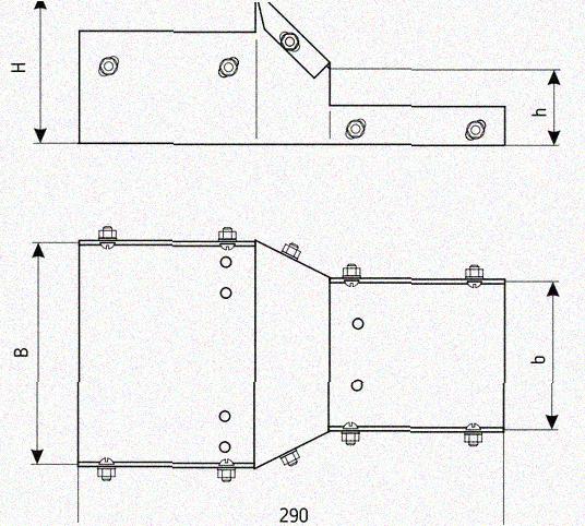 Лоток переходной замковый ЛПЗ 250х150-100х110 УХЛ1 горячее цинкование, S1,5