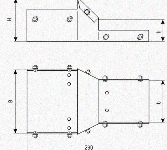 Лоток переходной замковый ЛПЗ 100х80-100х50 УТ1,5, оцинкованный лист, S1,0