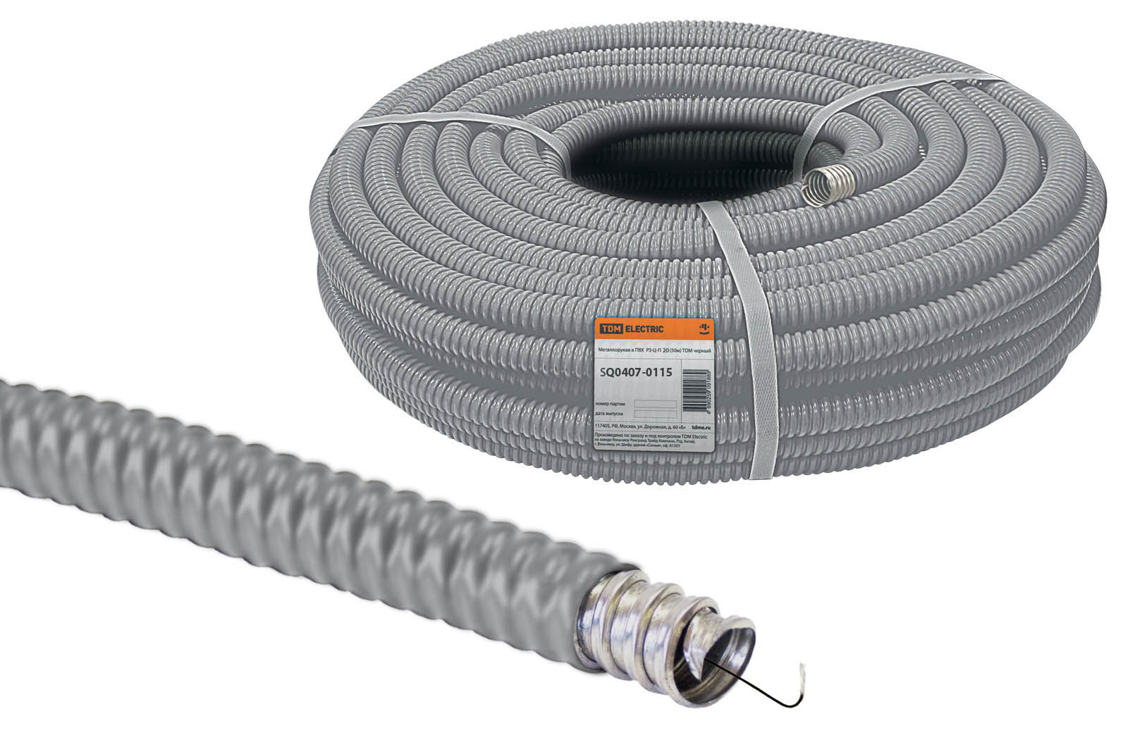 Металлорукав в ПВХ-изоляции РЗ-Ц-П 20 серый с протяжкой (25м) TDM
