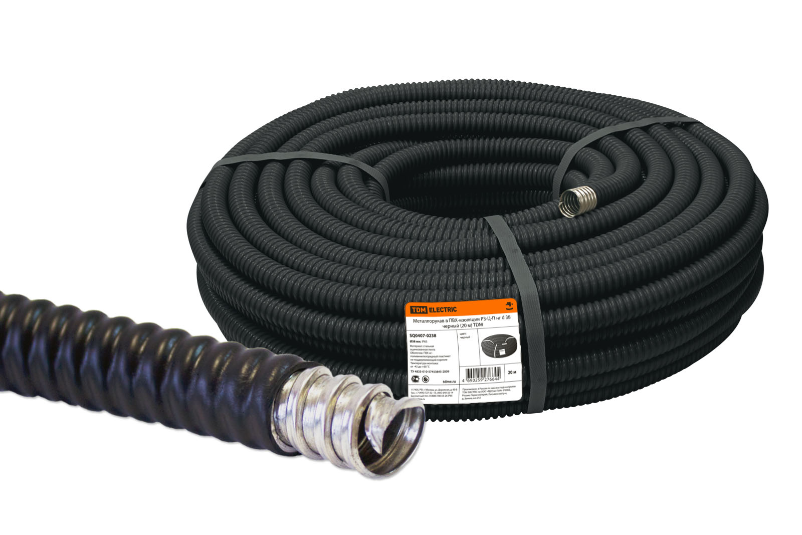 Металлорукав в ПВХ-изоляции РЗ-Ц-П d 38 черный без протяжки (20м) TDM