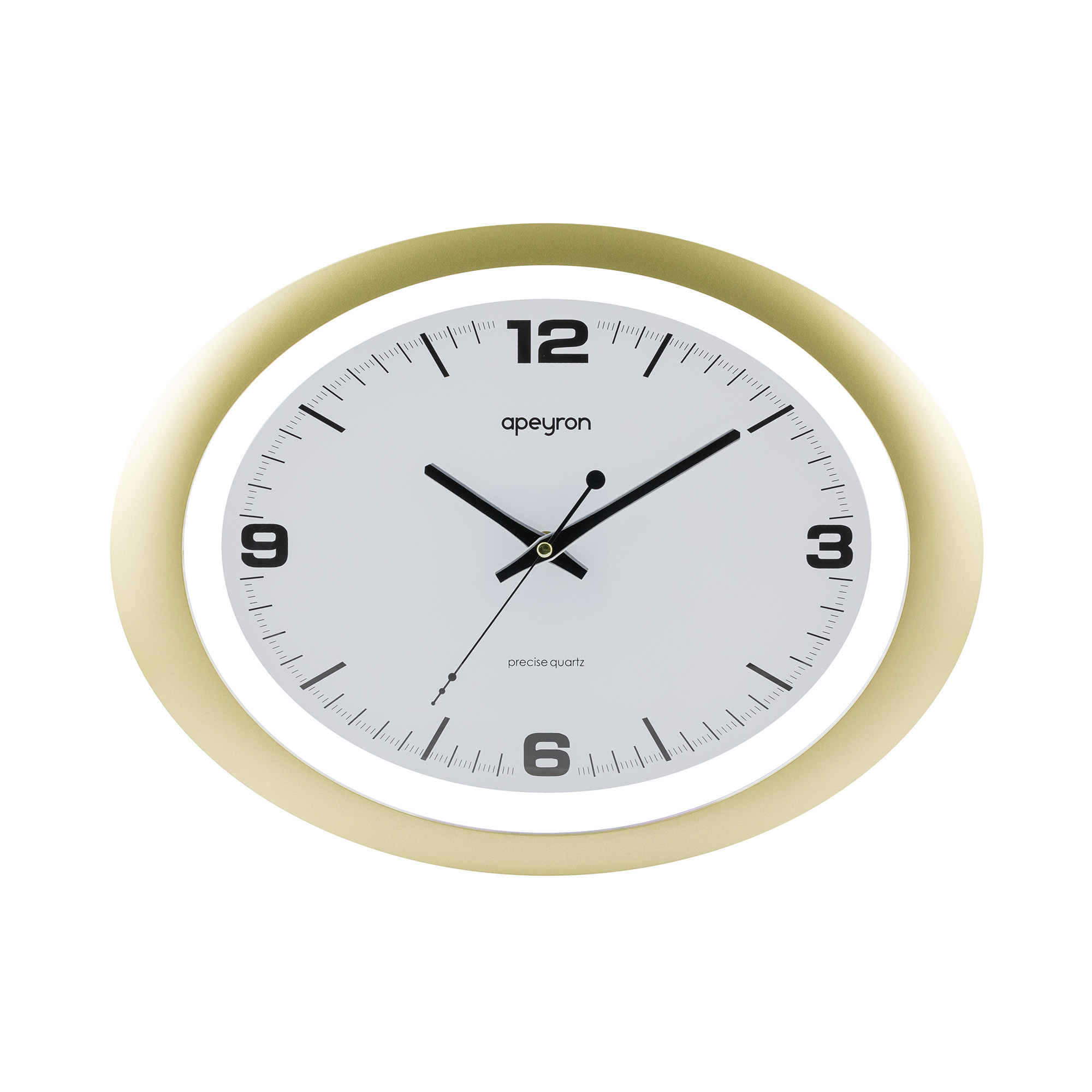 PL2207-032-1 Часы настенные, овал, арабский циферблат baton, цвет матовое золото, пластик, размер 40х30, бесшумный механизм с плавным ходом, источник