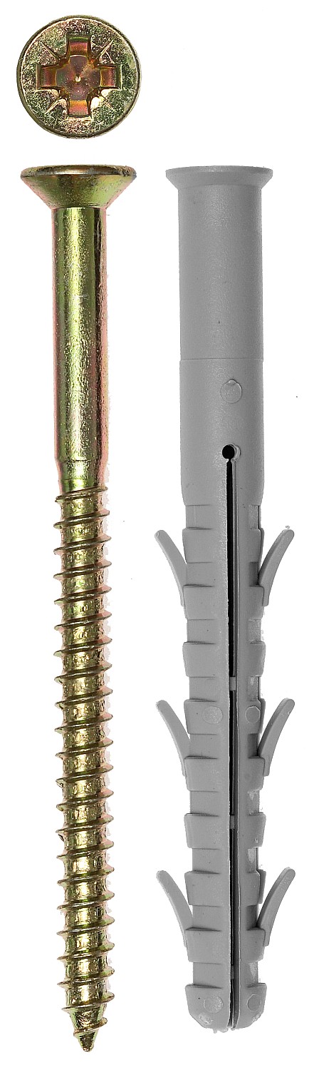 Дюбель — это крепёжный элемент, предназначенный для надёжного закрепления винтов и шурупов в различных материалах, таких как бетон, кирпич или гипсокартон. Он обеспечивает прочное соединение и предотвращает вырывание крепежа.