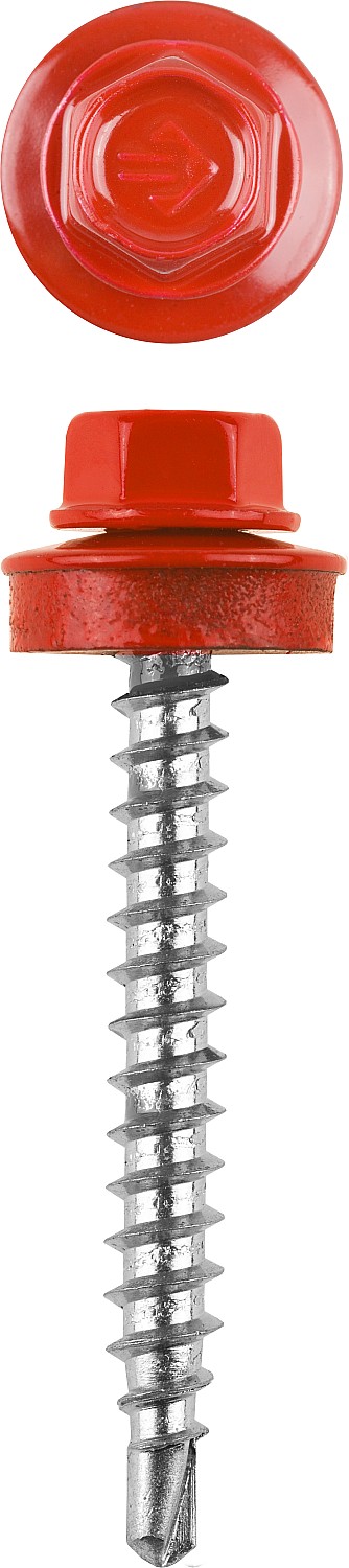 Саморезы СКД кровельные, RAL 3003 рубиново-красный, 60 х 4.8 мм, 200 шт, для деревянной обрешетки, Профессионал ЗУБР