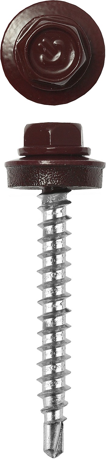 Саморезы СКД кровельные, RAL 3005 темно-красный, 60 х 4.8 мм, 200 шт, для деревянной обрешетки, Профессионал ЗУБР