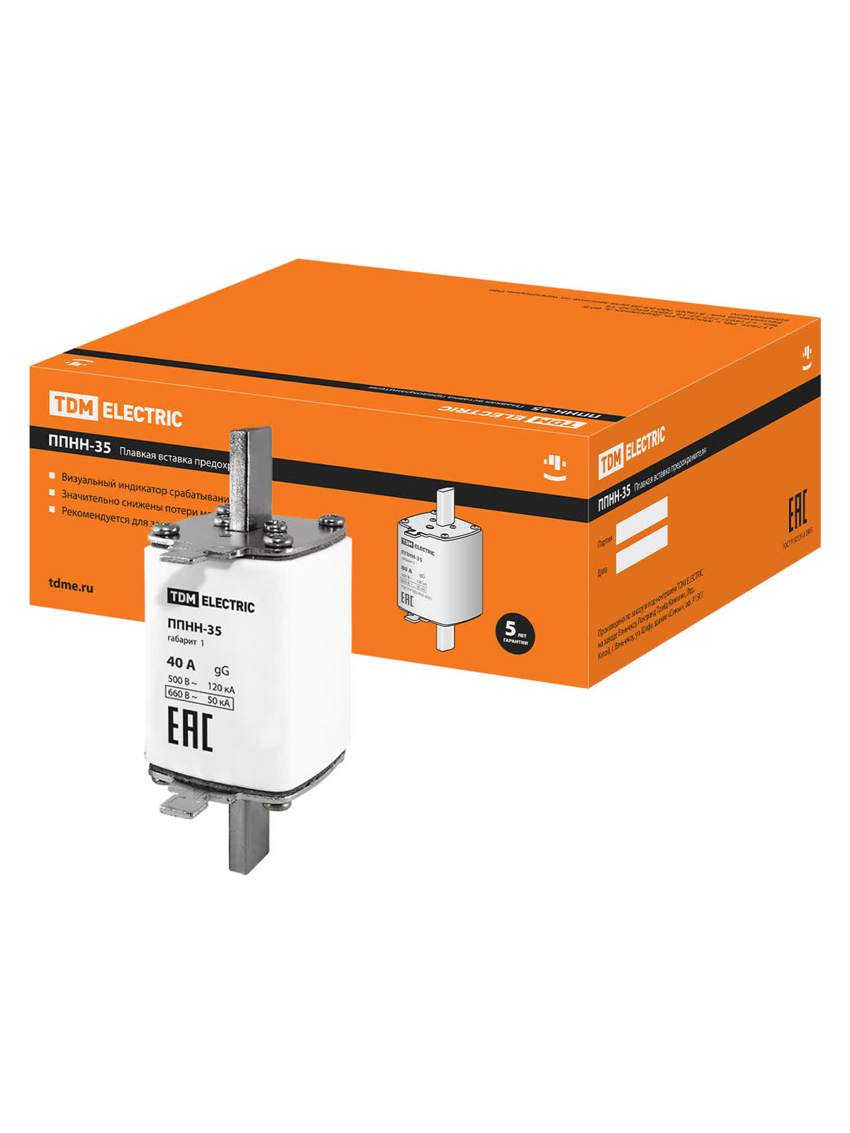 Плавкая вставка предохранителя ППНН-35, габарит 1, 40А TDM доступен в интернет‑магазине ВольтМаркет. Покупая у нас, вы получаете дополнительные преимущества: