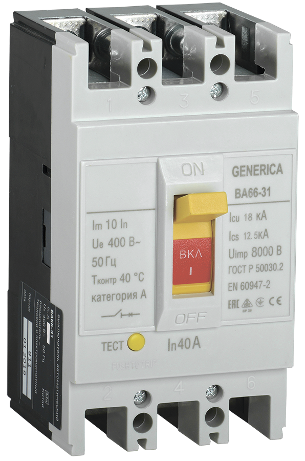 Выключатель автоматический ВА66-31 3П 40А 18кА GENERICA доступен в интернет‑магазине ВольтМаркет. Покупая у нас, вы получаете дополнительные преимущества: