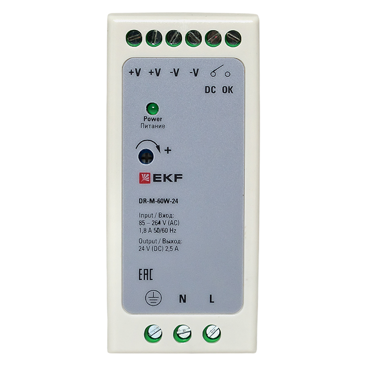 Блок питания на DIN рейку 60Вт, Uвх ~ 220 В AC m, Uвых - 24 В DC постоянного тока EKF доступен в интернет‑магазине ВольтМаркет. Покупая у нас, вы получаете дополнительные преимущества: