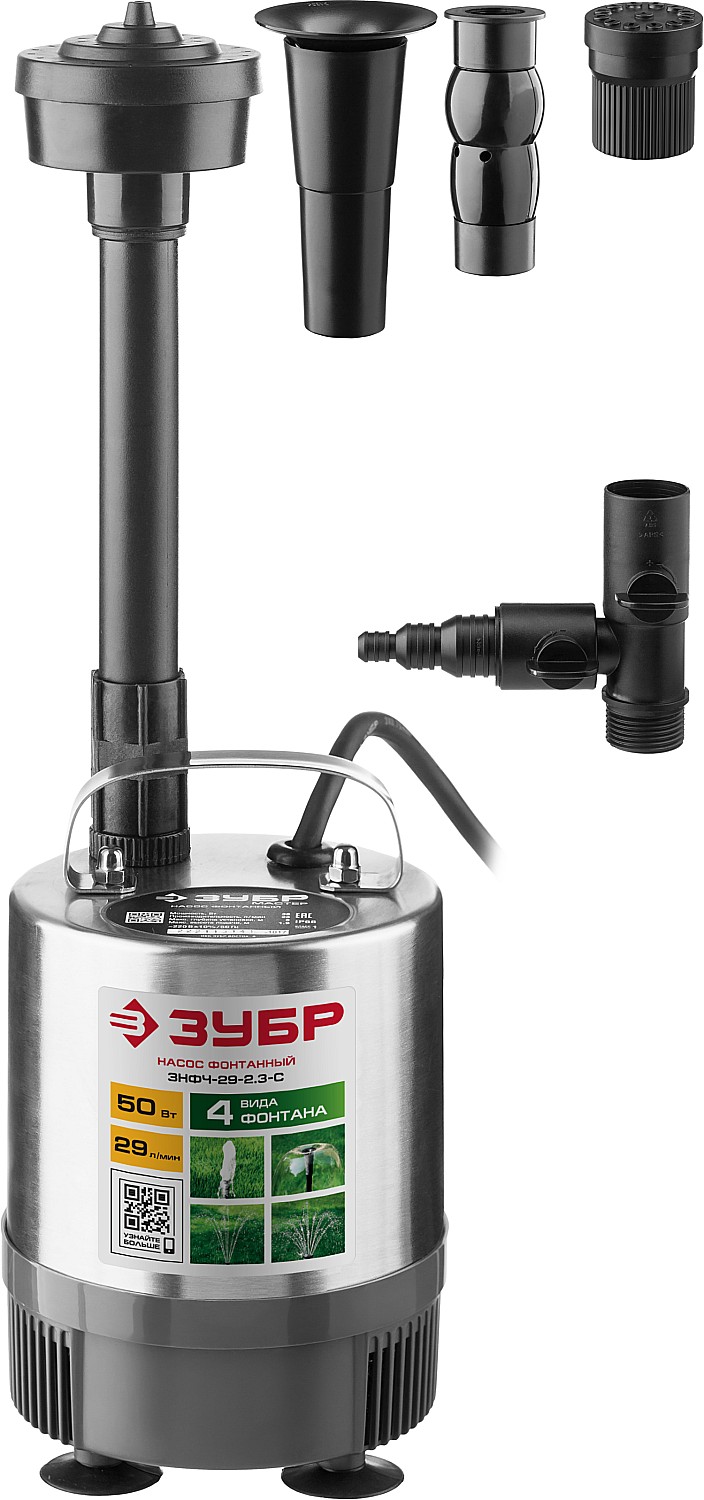 Насос фонтанный, ЗНФЧ-29-2.3-C, нерж сталь, для чистой воды, напор 2,3 м, насадки: колокольчик, гейзер, каскад, 50Вт, 29 л/мин ЗУБР доступен в интернет‑магазине ВольтМаркет в Оренбурге. Покупая у нас, вы получаете дополнительные преимущества: