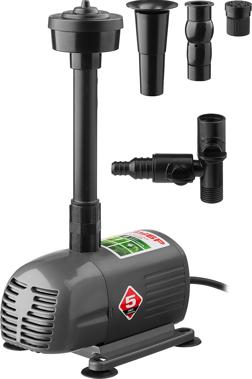 Насос фонтанный, ЗНФЧ-33-2.5, для чистой воды, напор 2,5 м, насадки: колокольчик, гейзер, каскад, 50 Вт, 33 л/мин ЗУБР в Оренбурге