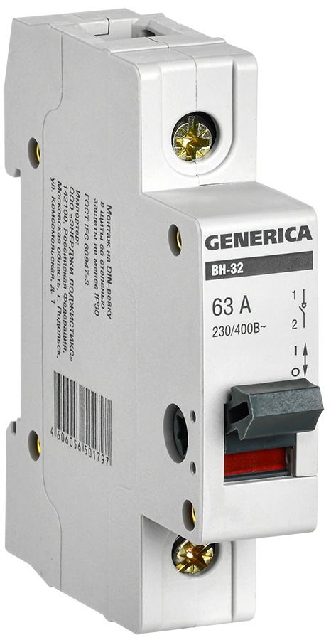 Выключатель нагрузки (мини-рубильник) ВН-32 1Р 63А GENERICA доступен в интернет‑магазине ВольтМаркет в Оренбурге. Покупая у нас, вы получаете дополнительные преимущества: