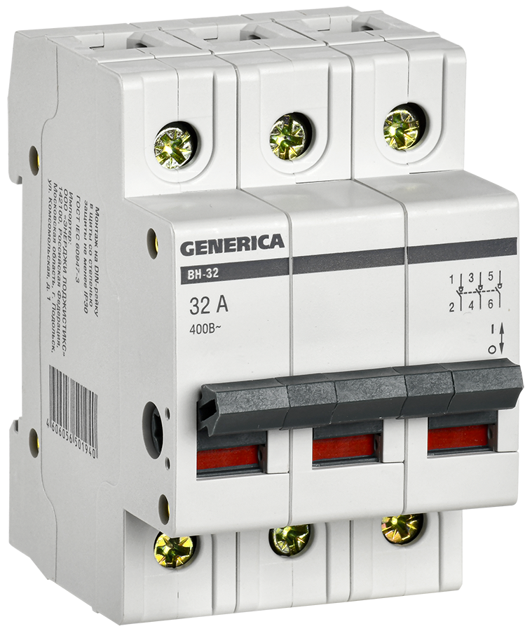 Выключатель нагрузки (мини-рубильник) ВН-32 3Р 32А GENERICA доступен в интернет‑магазине ВольтМаркет в Оренбурге. Покупая у нас, вы получаете дополнительные преимущества:
