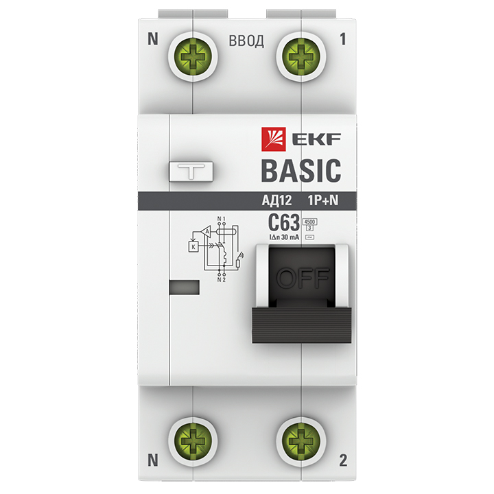 Дифференциальный автоматический выключатель АД-12 АВДТ 1П+N 63А С 4,5кА 30мА Basic EKF доступен в интернет‑магазине ВольтМаркет. Покупая у нас, вы получаете дополнительные преимущества: