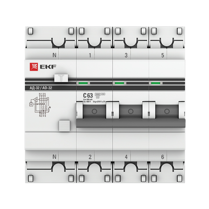 Дифференциальный автоматический выключатель АД-32 АВДТ 3П+N 63А С 4,5кА 300мА PROxima EKF доступен в интернет‑магазине ВольтМаркет. Покупая у нас, вы получаете дополнительные преимущества: