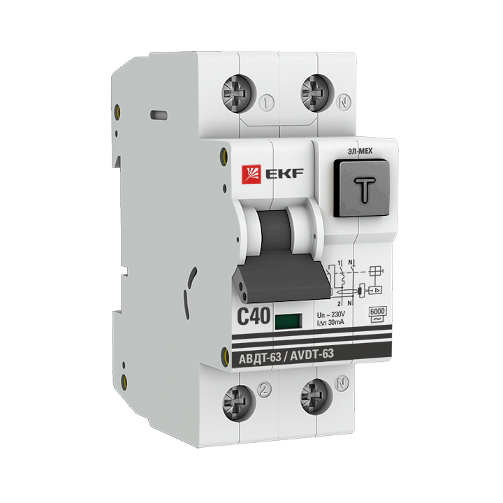 Дифференциальный автоматический выключатель АВДТ-63 40А 30мА (характеристика С, эл-мех, тип АС) 6кА PROxima EKF