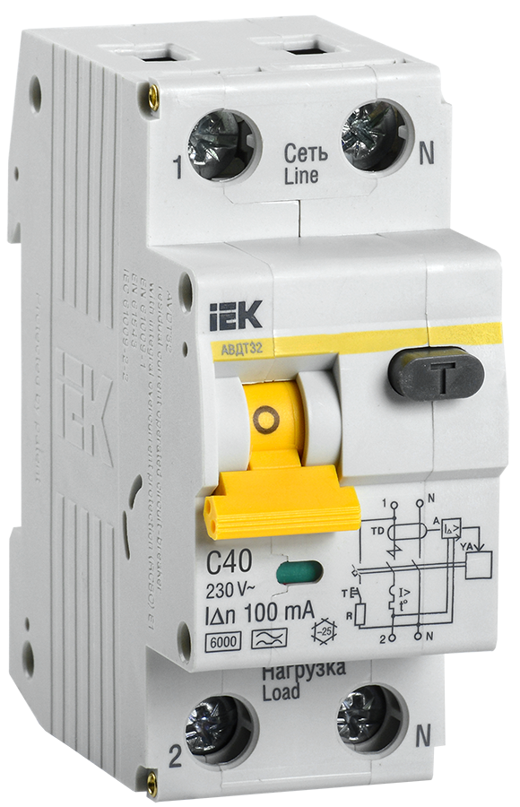 Дифференциальный автоматический выключатель АВДТ АВДТ32 40А С 100мА IEK