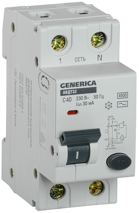 Дифференциальный автоматический выключатель АВДТ32 40А С GENERICA