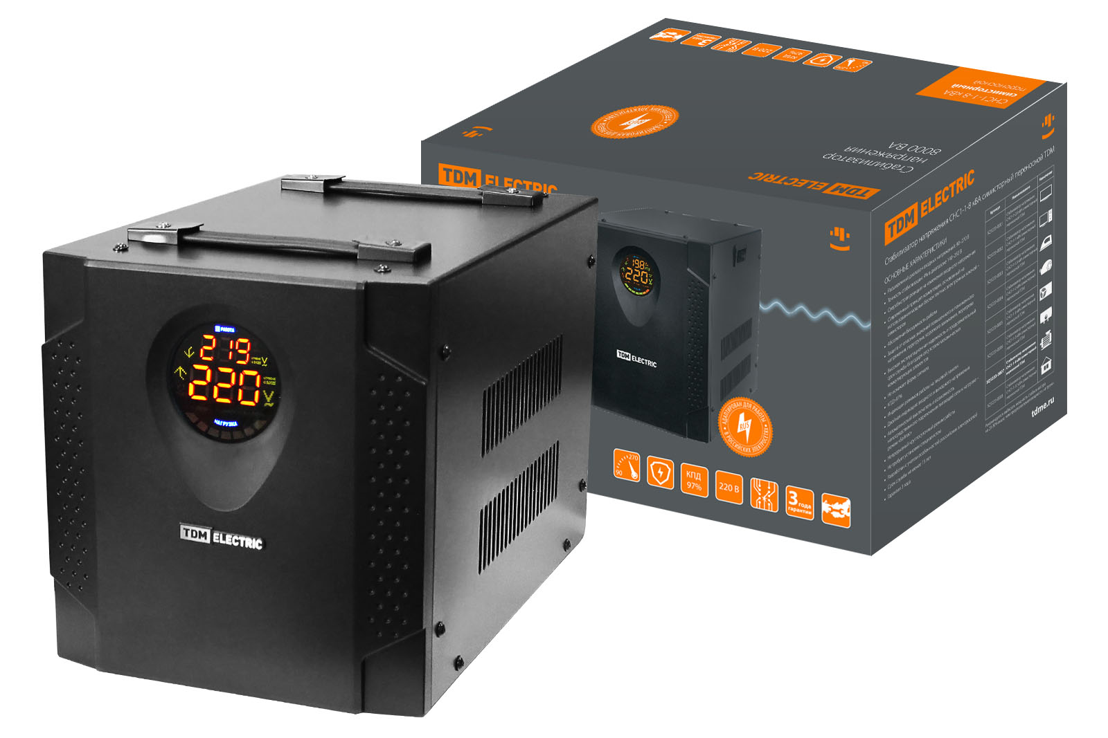 Стабилизатор напряжения СНС1-1-8 кВА симисторный переносной TDM доступен в интернет‑магазине ВольтМаркет в Оренбурге. Покупая у нас, вы получаете дополнительные преимущества: