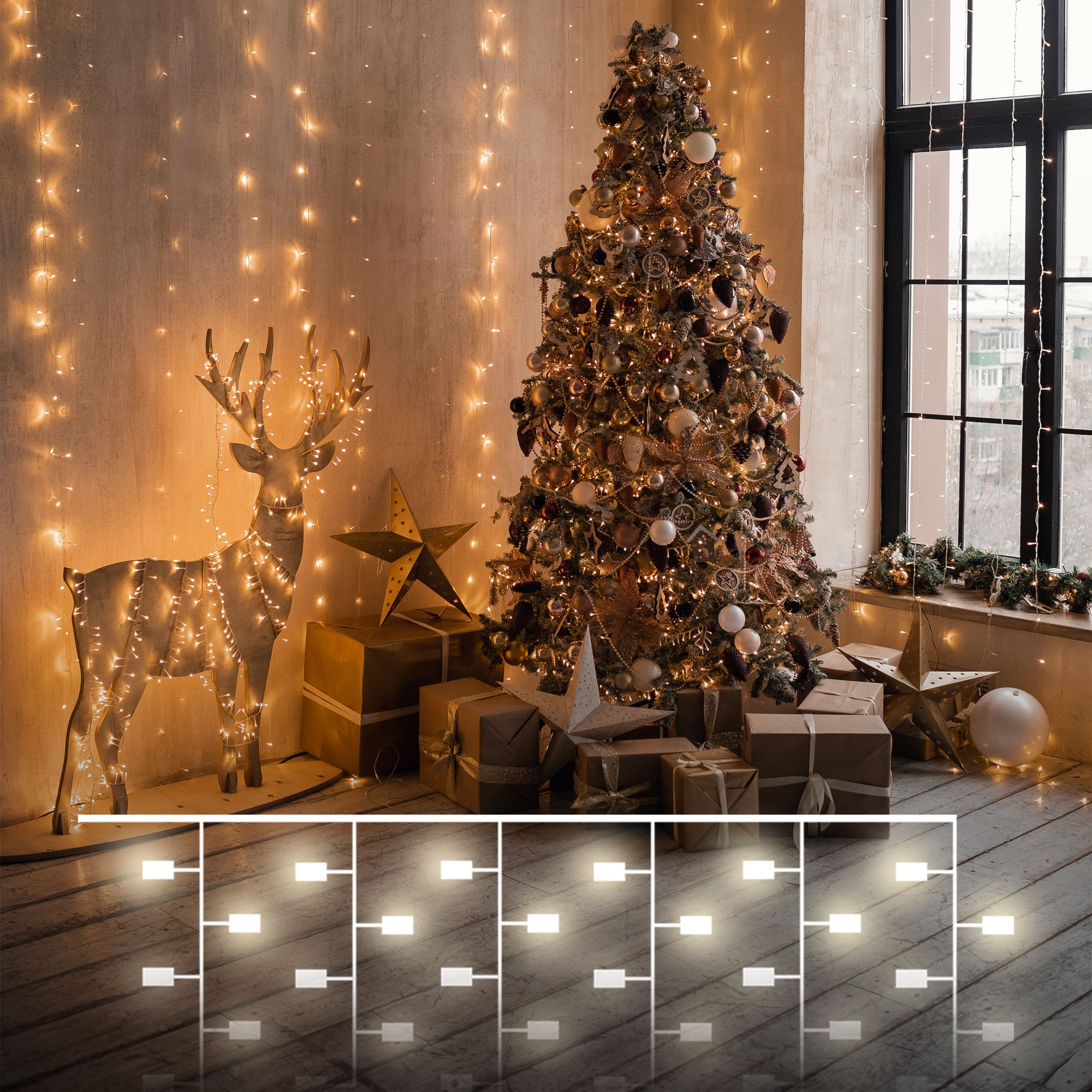 Гирлянды доступны в различных длинах — от 1 до 50 и более метров. Выбор зависит от места и целей украшения.