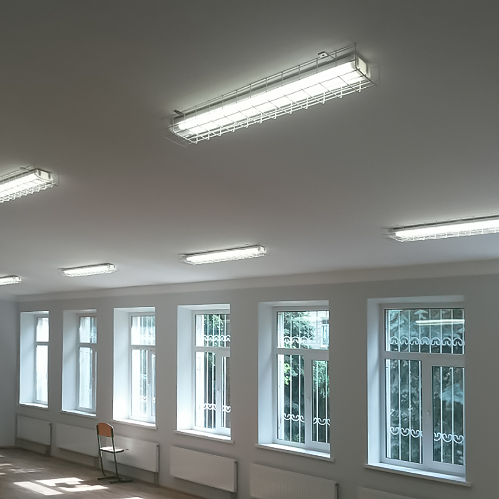 В комплектующие обычно входят крепежные элементы, подвесные тросы, декоративные накладки и розетки для подключения.