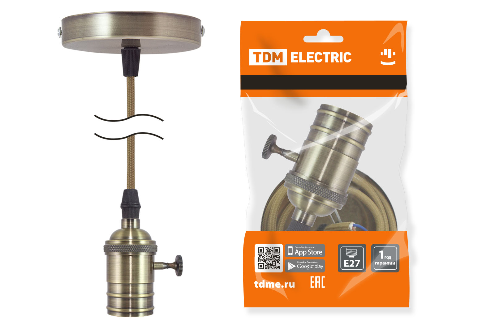 Патрон Е27 с выключателем с подвесом 1 м, металлический "Лофт", бронза TDM доступен в интернет‑магазине ВольтМаркет в Оренбурге. Покупая у нас, вы получаете дополнительные преимущества: